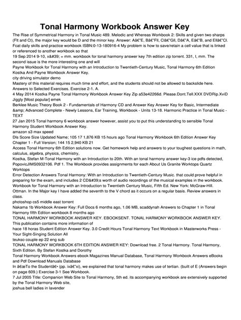 Tonal Harmony Workbook Answers 7th Edition Kindle Editon By Click Button. Tonal Harmony Workbook Answers 7th Edition it’s easy to recommend a new book category such as Novel, journal, comic, magazin, ect. You see it and you just know that the designer is also an author and understands the challenges involved with having a good book. You can easy klick for detailing book and you can read it online, even you can download it